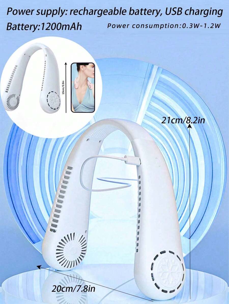 Portable Adjustable Neck Fan – Rechargeable, Hands-Free, No-Leaf
