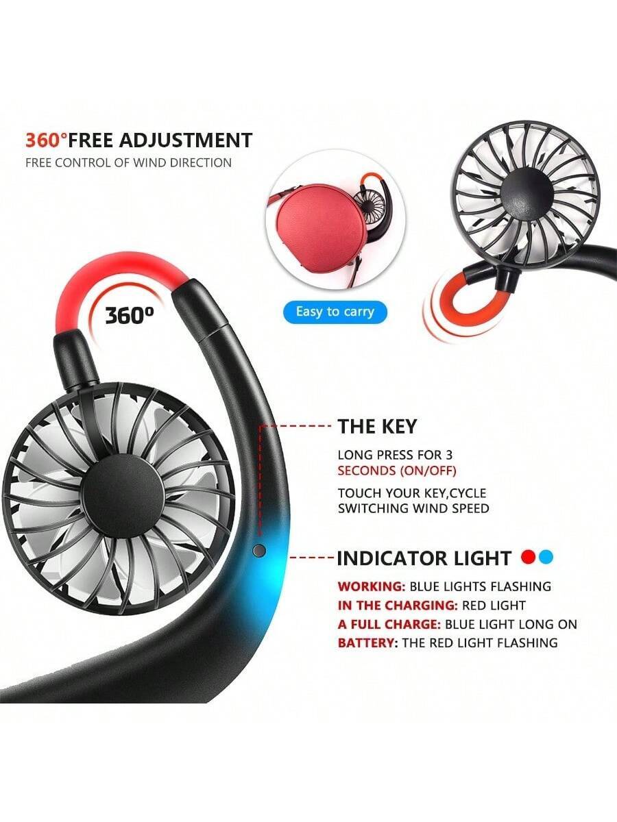 Portable Adjustable Neck Fan – Rechargeable, Hands-Free, No-Leaf
