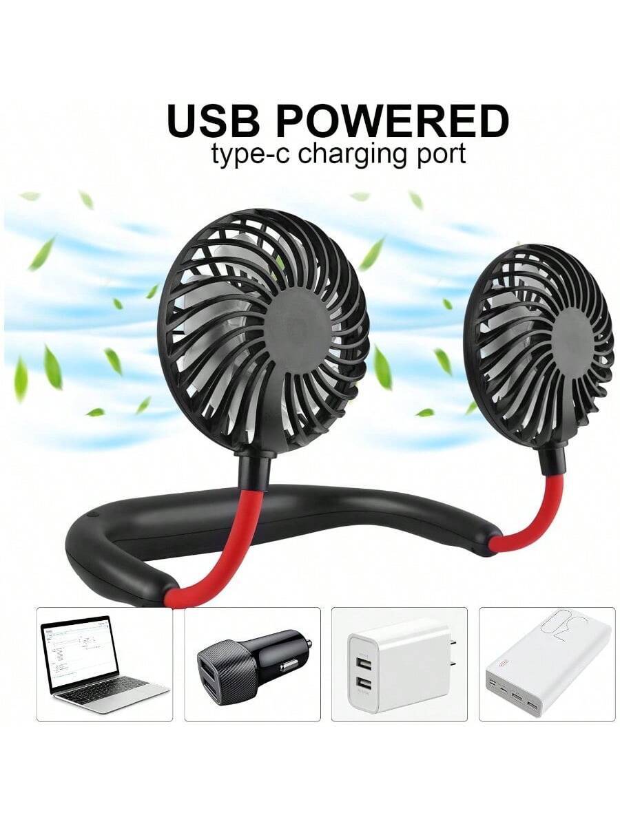 Portable Neck Fan 2500mAh – Double-Head USB Cooling