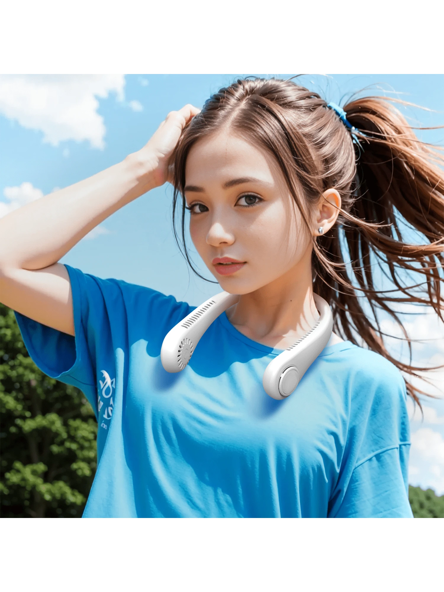 Portable Adjustable Neck Fan – Rechargeable, Hands-Free, No-Leaf