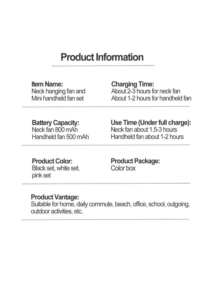 Portable Neck & Hand Fan Kit – USB Rechargeable, 3 Speeds