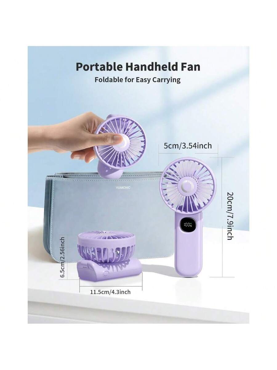 Purple 3-in-1 Portable Fan – 3000mAh, Handheld/Neck/Desk