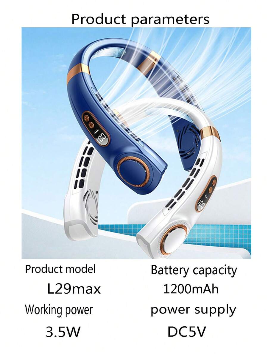 Portable Adjustable Neck Fan – Rechargeable, Hands-Free, No-Leaf