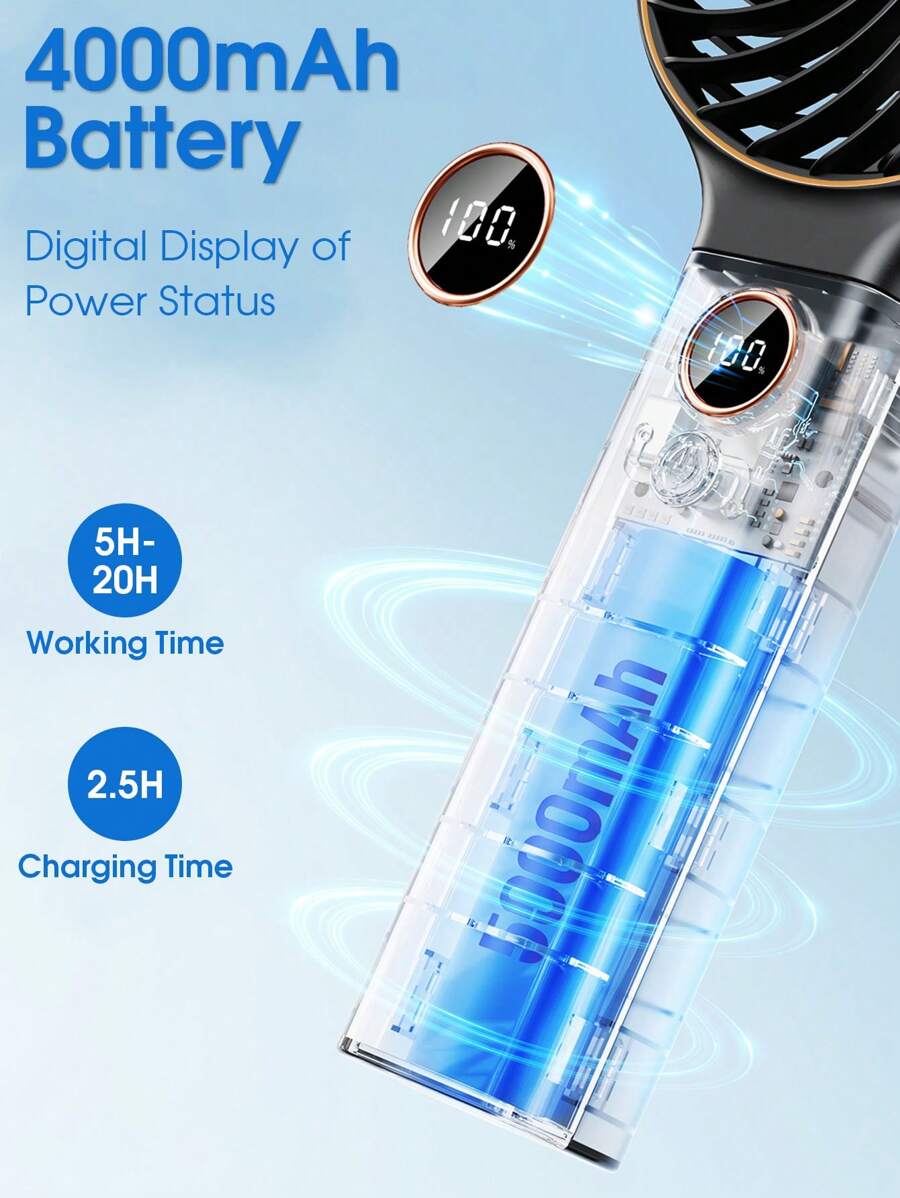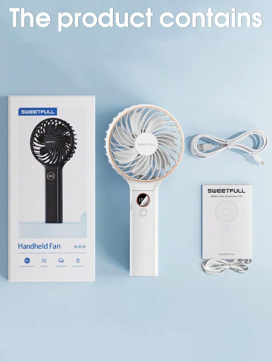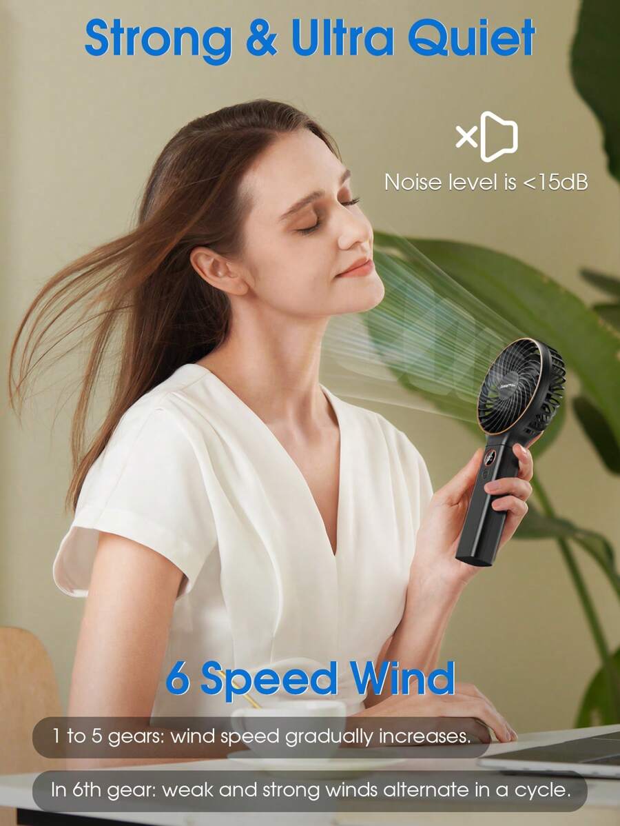 Rechargeable Foldable Handheld Fan – 6 Speeds, Digital Display