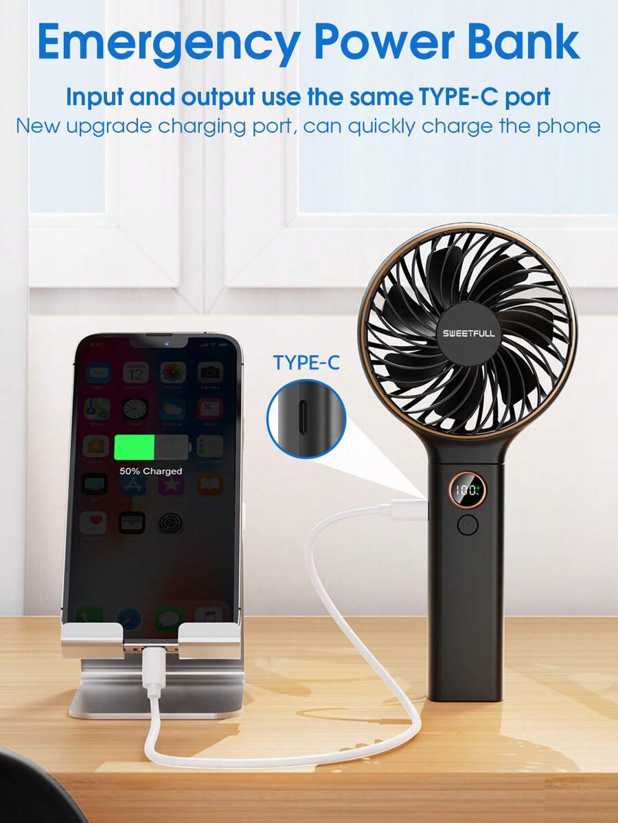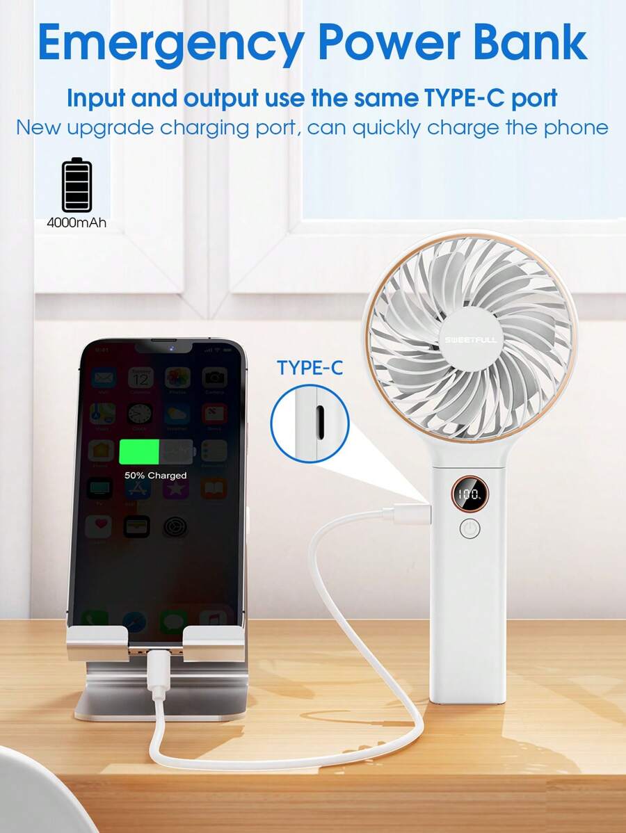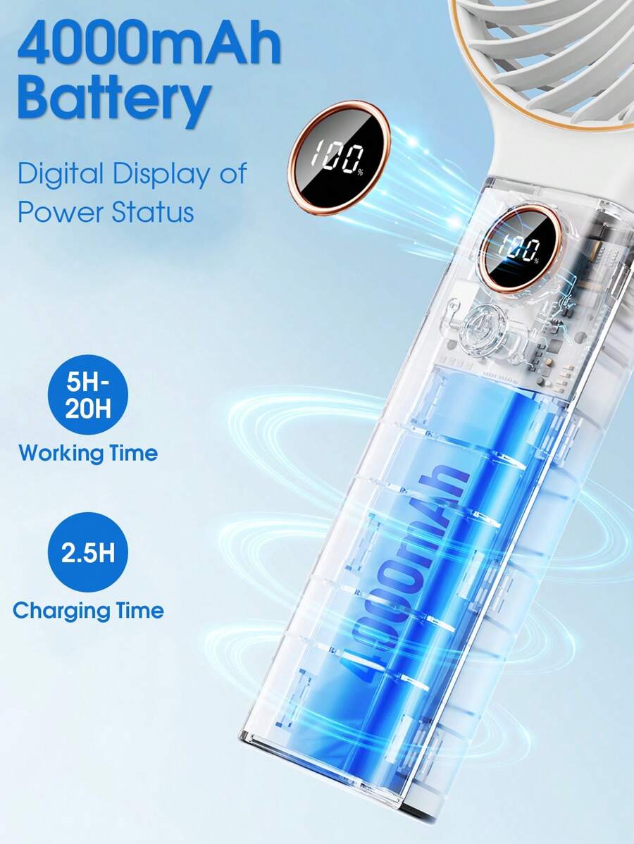 Rechargeable Foldable Handheld Fan – 6 Speeds, Digital Display