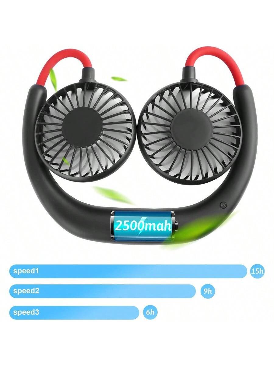 Portable Neck Fan 2500mAh – Double-Head USB Cooling