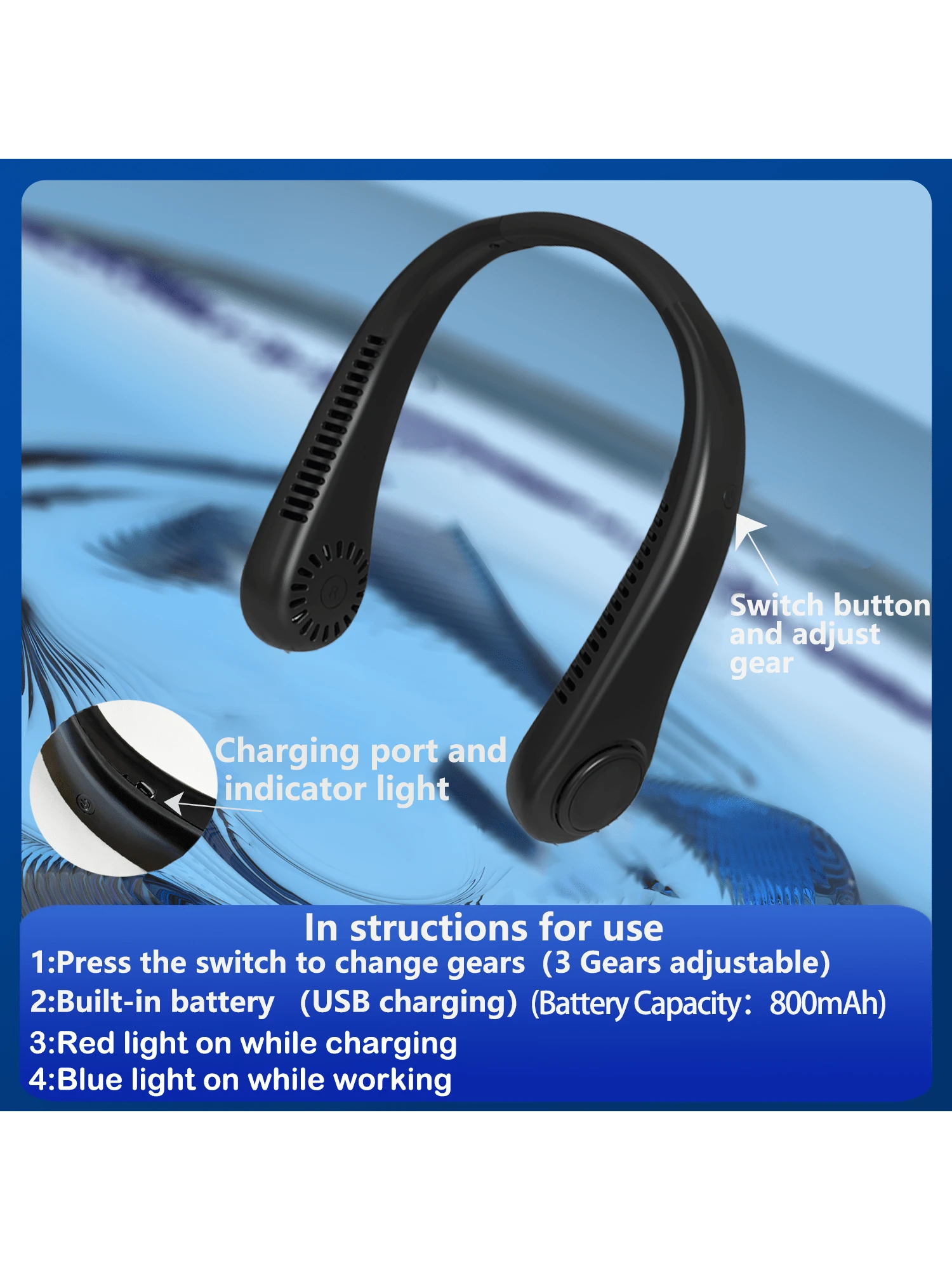 1pc Portable Electric Neck Fan