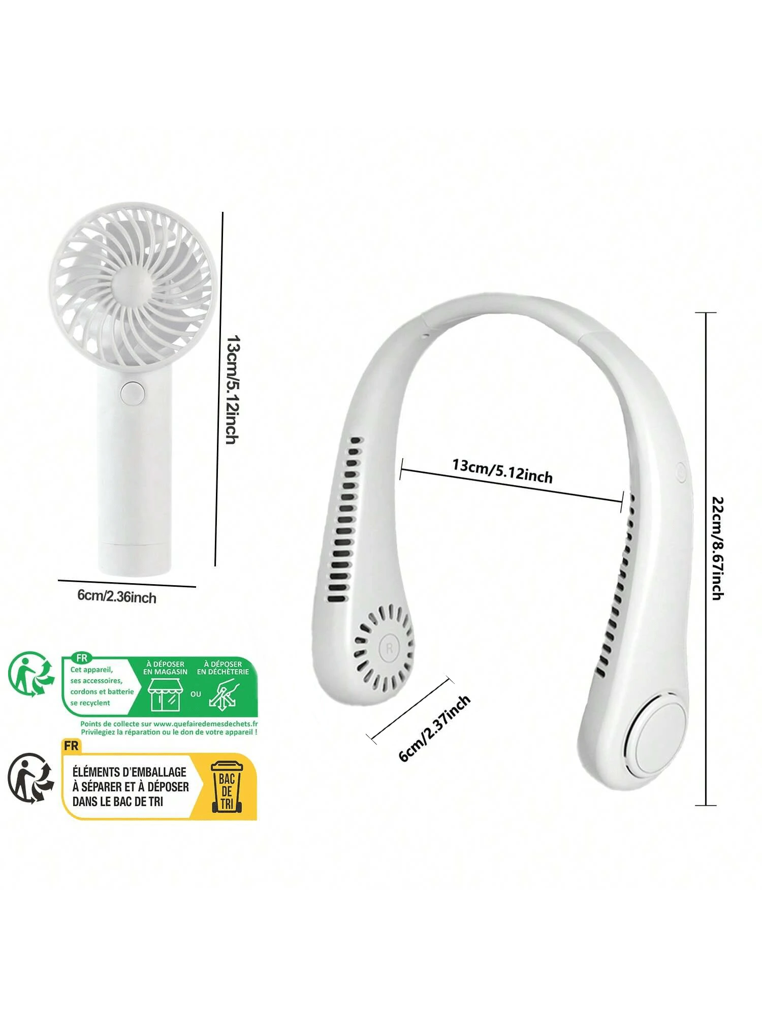 Portable Neck & Hand Fan Kit – USB Rechargeable, 3 Speeds